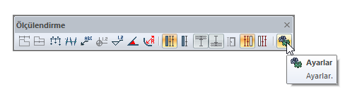 Ayarlar ![]() Tıklandığında hangi ölçülendirme tipi aktif ise (iç, dış, kesişim vs.) o ölçülendirme ile ilgili parametrelerin bulunduğu ölçülendirme ayarları diyaloğunu açar. |