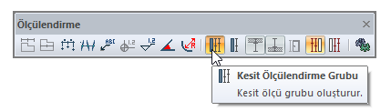 Kesit ölçülendirme grubu ![]() Kesit ölçü grubu oluşturur. Kesit ve görünüş pencerelerinde aktiftir. |