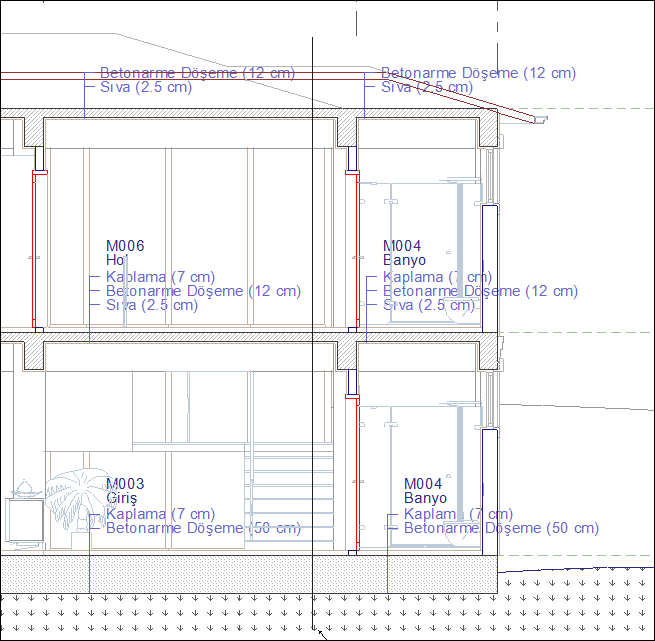 Döşemeler ![]() İşaretlenirse ikinci ölçü çizgisinde döşeme ölçüleri verilir. |