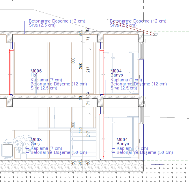 Döşemeler ![]() İşaretlenirse ilk ölçü çizgisinde döşeme ölçüleri verilir. |