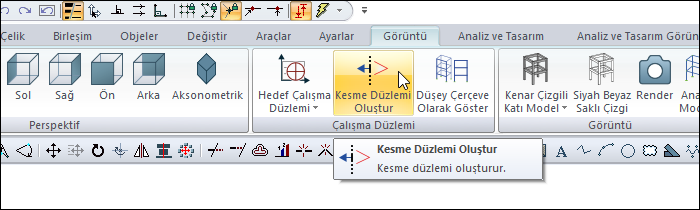 Kesme Düzlemi Oluştur Komutunun Yeri