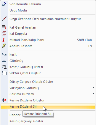 Açılan menüden Kesme Düzlemi Sil satırını tıklayınız.