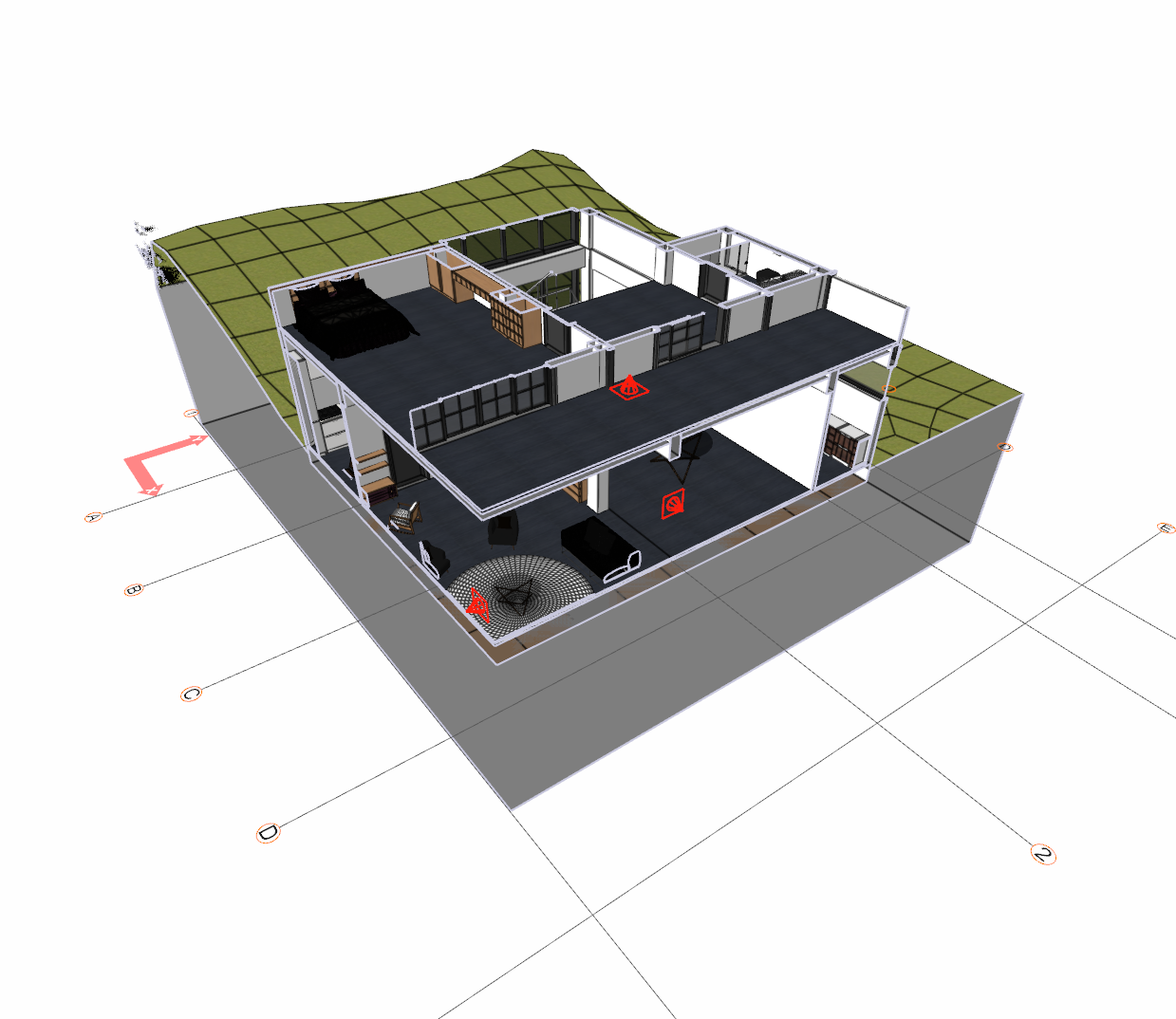 Kesme düzlemleri, seçilen bir ya da birden fazla yüzey boyunca yapı kesilerek oluşturulur. Kesimden sonra yapının kalan kısmı görülür. Kesme düzlemleri perspektif pencerede katı modelde uygulanabileceği gibi 3B analiz modelinde de uygulanabilir.