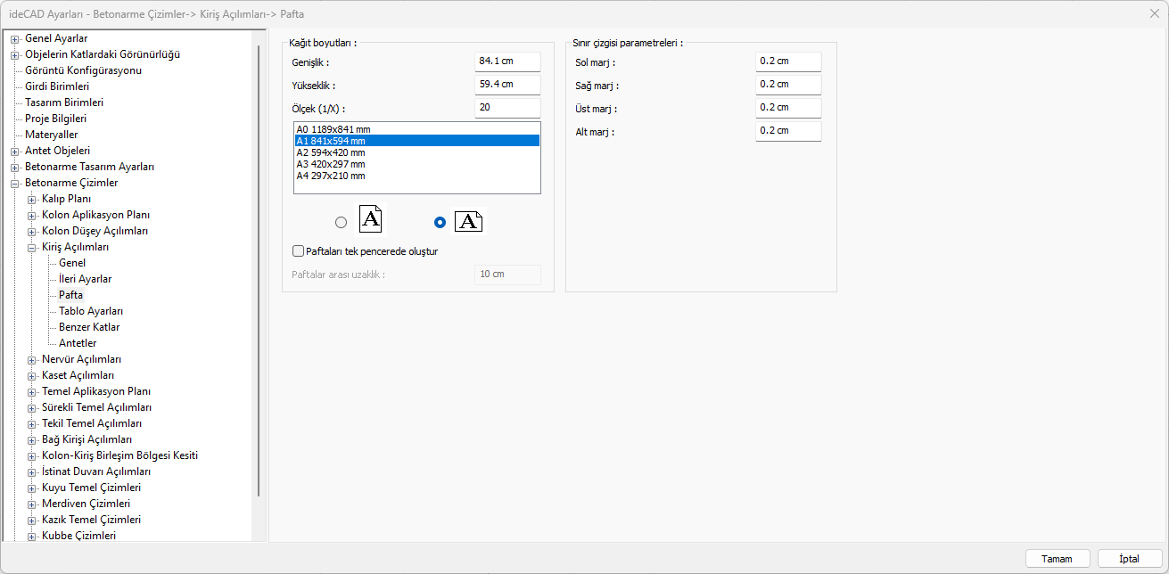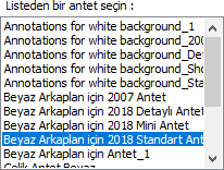 Paftalara antet ekleme ![]() İşaretlenirse paftalara antet eklenmez. |