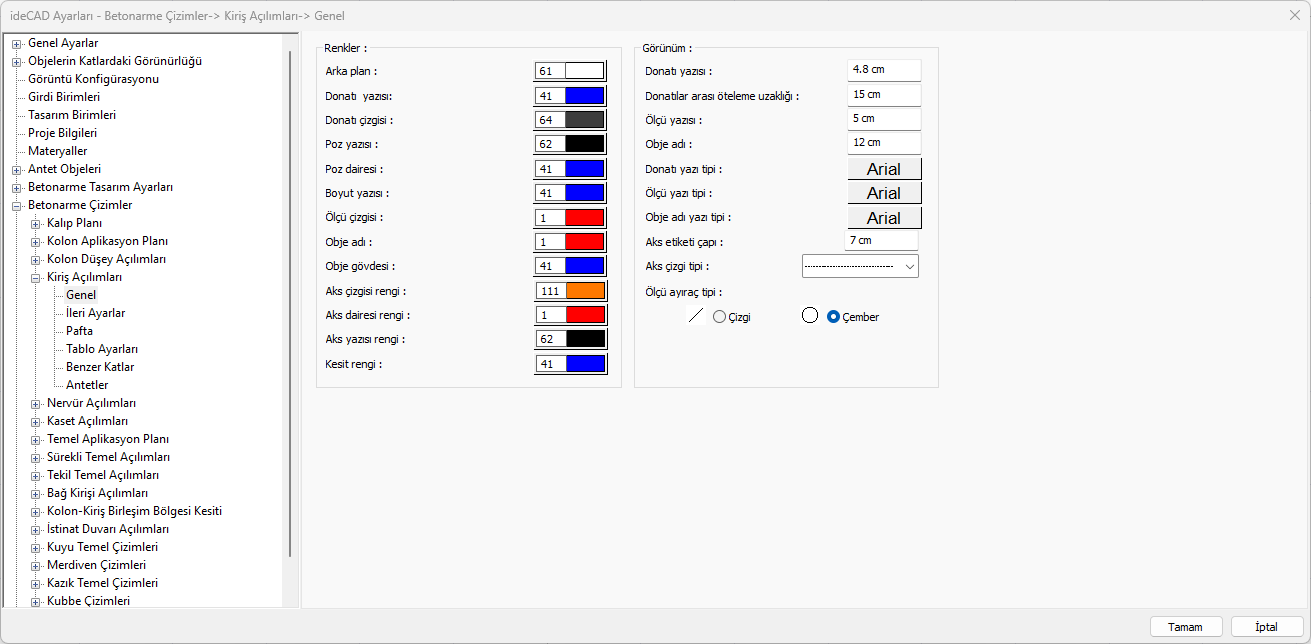 Donatı tanımlarını yaz ![]() İşaretlenirse, çizimlerde donatı tanımları gösterilir. İşaretlenmezse gösterilmez. |