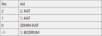 No ve İsim ![]() Kat numaraları ve isimleri listelenir |