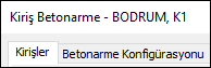 Seç ![]() İmlecin bulunduğu satırdaki objeyi seçer. Betonarme diyalog kapatıldığında seçilen eleman için işlem yapabilirsiniz. |