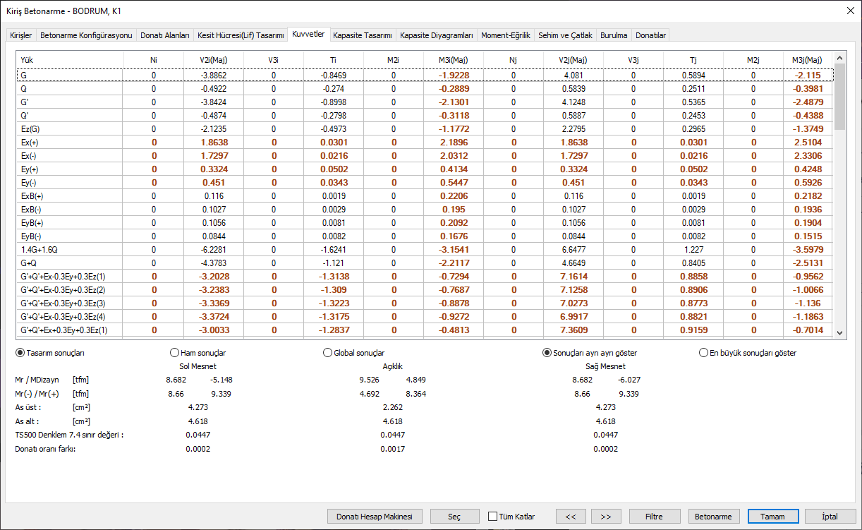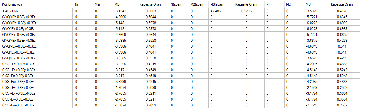 Yükleme durumu ![]() Kapasite diyagramında işaretlenen iç kuvvetlerin belirlendiği kombinasyon listesidir. |