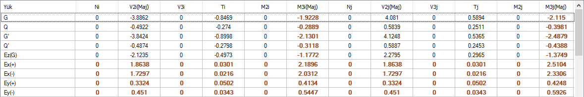 Kuvvetler tablosu ![]() Yük: İlgili yükleme veya yük kombinasyonlarının adıdır. |