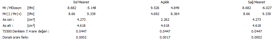 Mevcut donatı alanı ![]() Kirişin i ucu, açıklık ve j ucu için mevcut donatı alan değerleri gösterilir. |