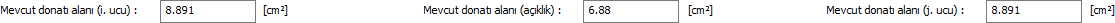 ![]() Döşeme donatısından dolayı tablada dikkate alınması gereken ekstra donatı alanıdır. Burada yazılan donatı alanı değeri mevcut kiriş donatı alanına eklenir. |