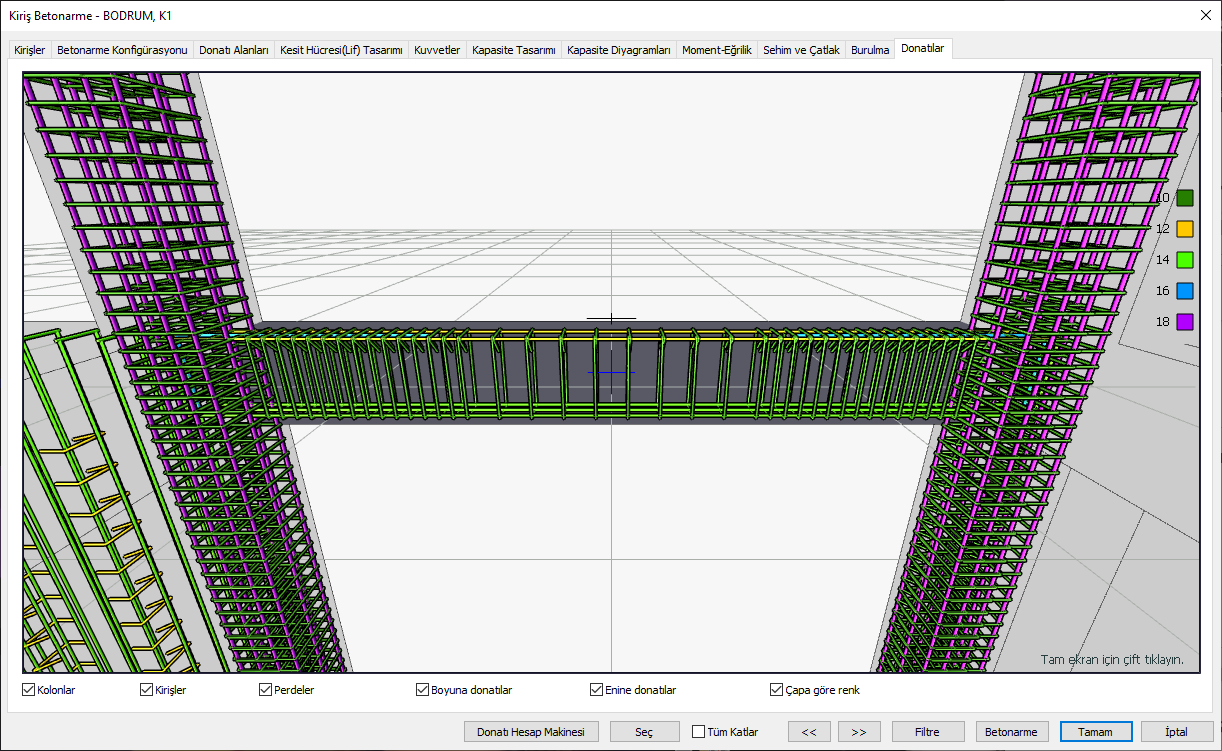 Kirişler ![]() Seçenek işaretli ise kiriş donatıları ekranda gösterilir. |