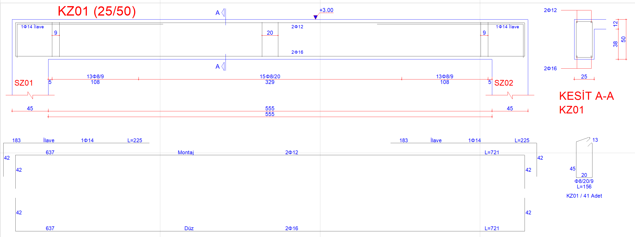 - Sarılma bölgesi dışında, TS 500’de verilen enine donatı koşullarına uyulur. Kiriş eksenine dik doğrultuda etriye kolları aralığı 350 mm’yi aşmayacak şekilde otomatik düzenlenir.