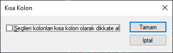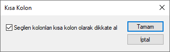 Açılan kısa kolon diyaloğunda “Seçilen kolonları kısa kolon olarak dikkate al.” seçeneğini işaretleyin.