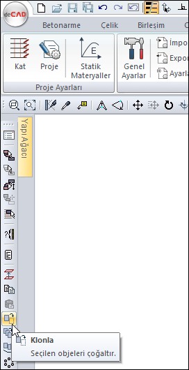 Klonla komutu programın sol kenarında bulunan toolbardan çalıştırılabilmektedir.