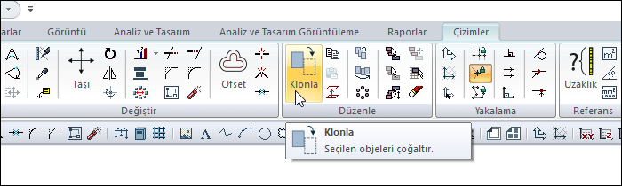 Klonla komutu sırasında objelerin seçilmesi ve referans noktanın verilmesi ![]() ![]() |