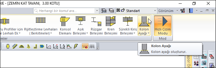 Çelik menüsünden Kolon Ayağı satırını tıklayın.