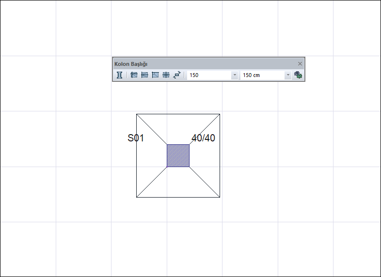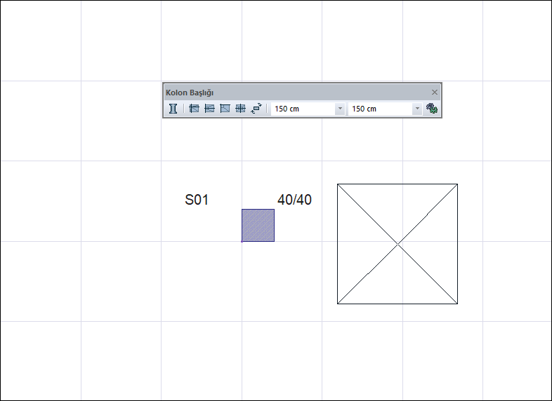 Dikdörtgen kolon ![]() Kolon çizim komutunu çalıştırır. Kolon komutu ile birlikte kolon başlığı toolbarı da kapanır ve kolon toolbarı ekrana gelir. |