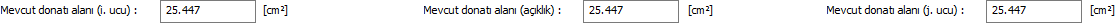 Mevcut donatı alanı ![]() i ucu, açıklık ve j ucu için mevcut donatı alan değerleri gösterilir. |