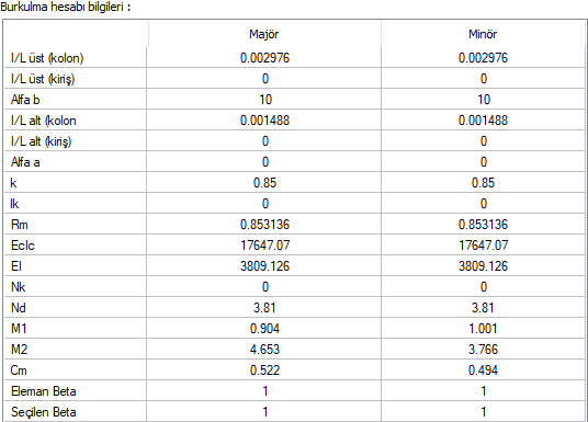 Kap. Oran ![]() Eksenel kuvvet ve iki eksenli eğilme etkisi altındaki kolonun hesaplanan kapasite oranın ifade etmektedir. |