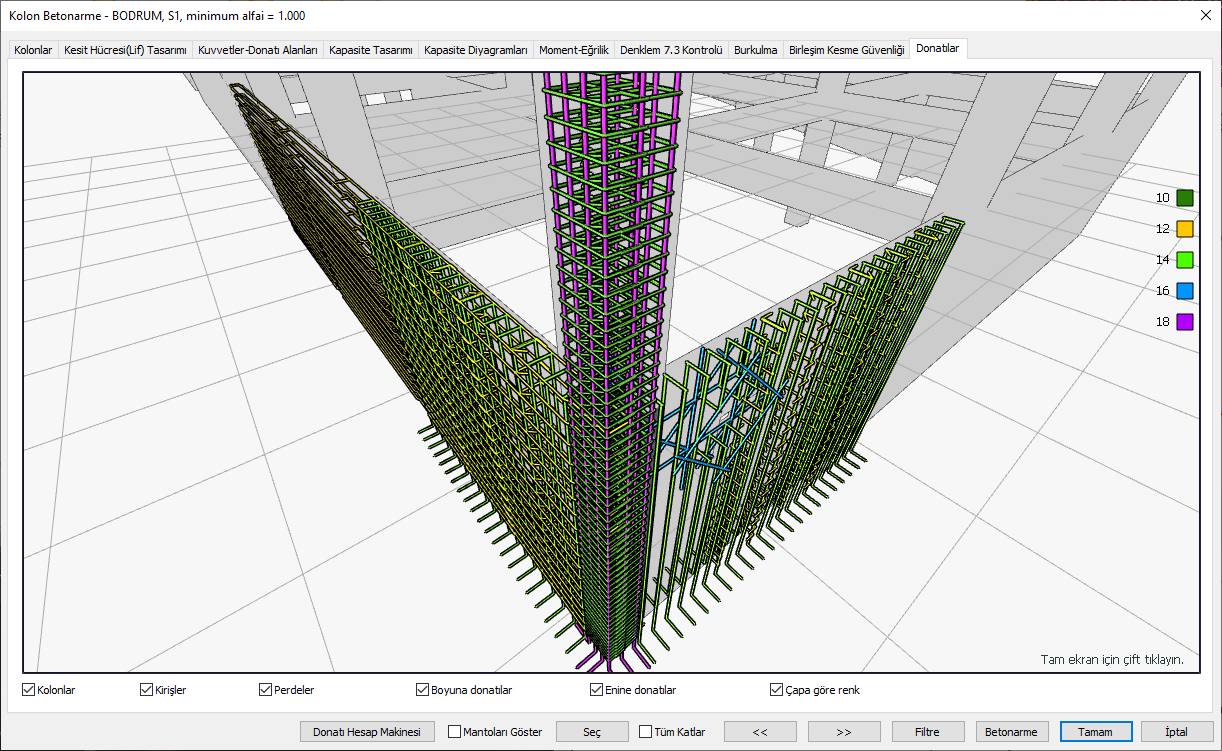 Kolonlar ![]() Seçenek işaretli ise kolon donatıları ekranda gösterilir. |