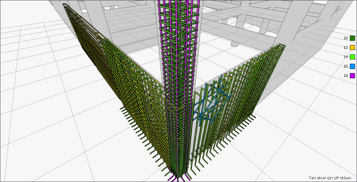 Boyuna donatılar ![]() Seçenek işaretli elemanlara ait boyuna donatılar ekranda gösterilir. |