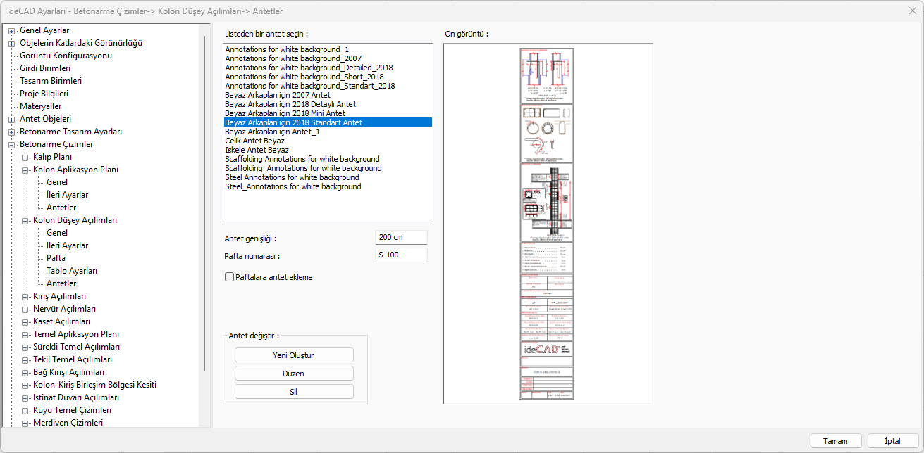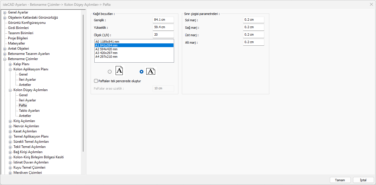 Paftalara antet ekleme ![]() İşaretlenirse paftalara antet eklenmez. |
