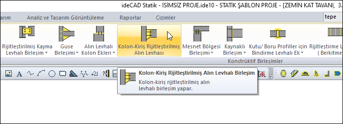 Çelik menüsünden Kolon-Kiriş Rijitleştirilmiş Alın Levhalı Birleşim satırını tıklayın.