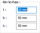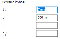 Alın levhası 2 ![]() Alın levhası değerler girilerek belirlenir. Girilecek değerler şematik çizimde gösterilmektedir. |
