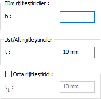 Rijitleştiriciler ![]() Rijitleştiriciler değerler girilerek belirlenir. Girilecek değerler şematik çizimde gösterilmektedir. |