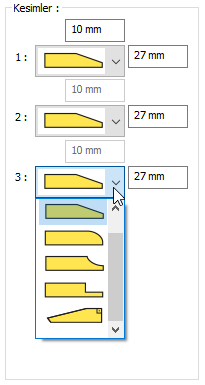 Kesimler ![]() Levhaların sahada kolay montajı için şev kullanılmasına, şev tipine ve geometrik özellikleri değer girilerek belirlenir. |