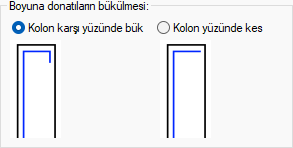 Boyuna donatıların bükülmesi ![]() Son kat kolonlarında kolon donatısının bitiş şekli seçilir. |
