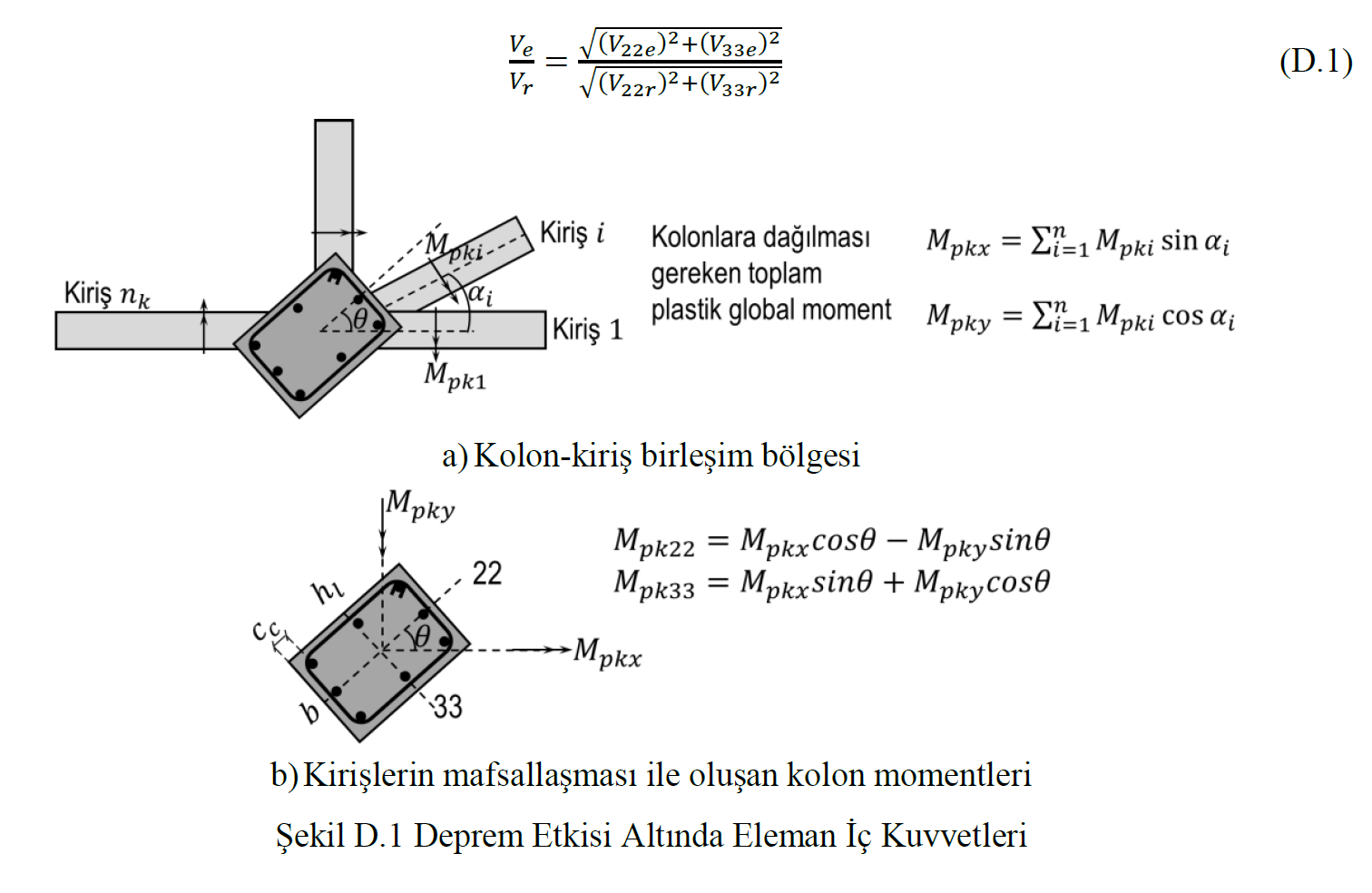 Denklem D.2 ’de M22üst,M33üst birleşim bölgesine bağlanan alt kolon üst uç momentlerini, M22alt,M33alt ise üst kolon alt uç momentlerini göstermektedir.