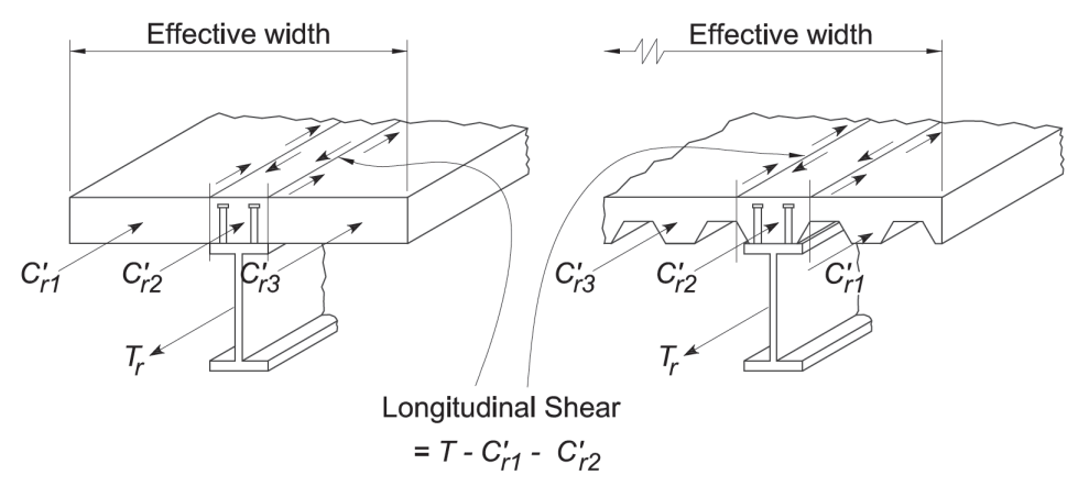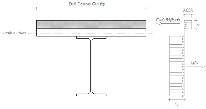 Betonarme döşemedeki basınç kuvveti, C, değeri, AISC 360-16 ve TÇY ‘e göre 3 koşul dikkate alınarak hesaplanmalıdır.
