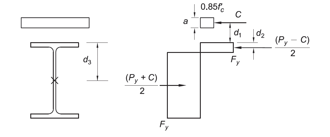 d1 : distance from the compression force in the concrete to the top of the steel section, in. (mm)