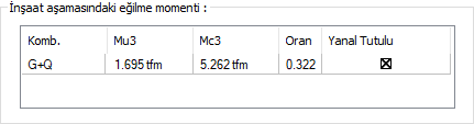 İnşaat aşamasındaki eğilme momenti ![]() Mu3: 3 yönünde oluşan eğilme momenti değeridir. |