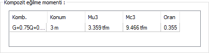 Kompozit eğilme momenti ![]() Komb.: En olumsuz kompozit eğilme momenti oranını ortaya çıkaran yük kombinasyonu. |
