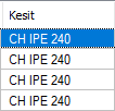 Komb.: En elverişsiz kesit kuvvetlerini oluşturan kombinasyondur. Konum: Tasarımda dikkate alınan kesit kuvvetlerinin kiriş üzerindeki konumudur. Pu: Eksenel yük değeridir. Mu3: Elemana 3 yönünde etkiyen moment değeridir. Pc: Petek kirişin eksenel yük kapasitesidir. Mc3: Elemanın 3 yönündeki moment kapasitesidir. Etkileşim denklemi: Oran hesabında kullanılan etkileşim denklemidir. Oran: Etkileşim denklemi ile bulunan moment-kapasite oranıdır.