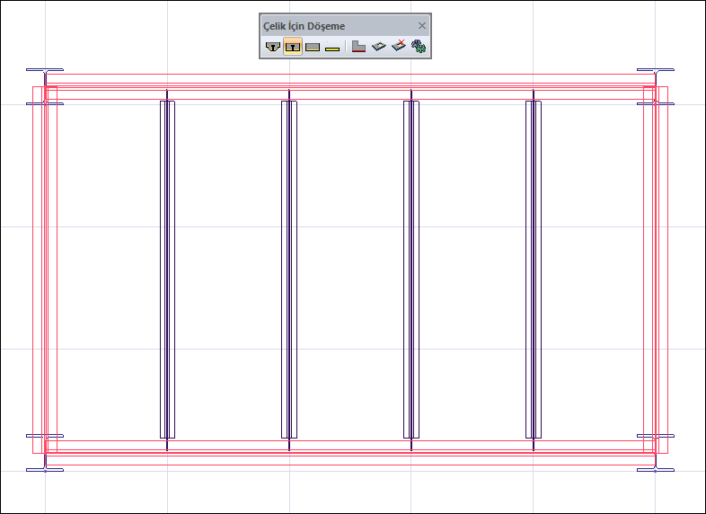 Seçime tali kirişlere paralel olan bir çelik kiriş seçimi ile başlanmalı ve kapalı bir poligon oluşturulmalıdır.