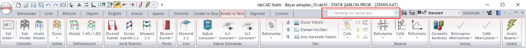Ribbon menü arayüzünün sağ üstünde bulunan ”Komut arama” satırı kullanılarak aranılan komut bulunur ve kısa yoldan ulaşılıp, otomatik çalıştırılır.