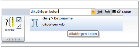 Arama satırında örneğin Dikdörtgen Kolon yazmaya başlayınız. Komut yazıldıkça, onunla eşleşen komutlar listelenmeye başlanacaktır.