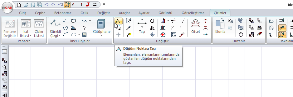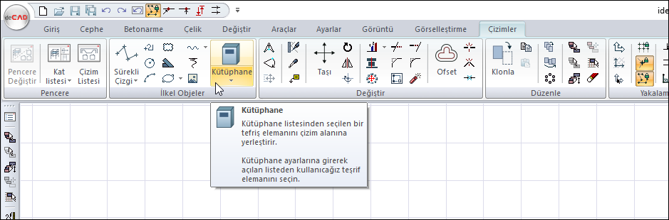 Fare imleci komut ikonları üzerine getirilirse, komut işlevini içeren bilgi kutusu açılır.