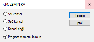Sol ucu boşta konsol yapılacaksa sol konsol, sağ ucu boşta konsol yapılacaksa sağ konsol, program otomatik bulacaksa, program otomatik yazısını tıklayın.