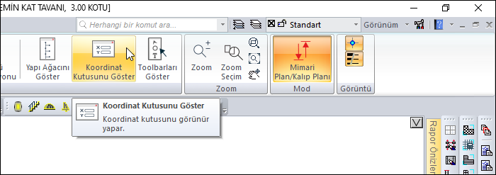 Ayrıca Koordinat Kutusunu Göster komutu kullanılarak da koordinat kutusu açılır.