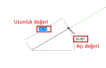 Dinamik giriş, obje girerken koordinat kutusunu kullanmadan açı ve uzunluk bilgilerinin girilmesini sağlar.