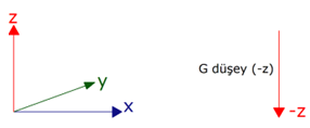 Sabit ağırlık G ise Z eksi(-) yönde aşağıya doğrudur.