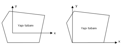 Proje (yapı tabanı), eksen takımının herhangi bir noktasında olabilir.