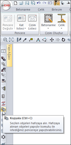 Kopyala komutu programın sol kenarında bulunan toolbardan çalıştırılabilmektedir.