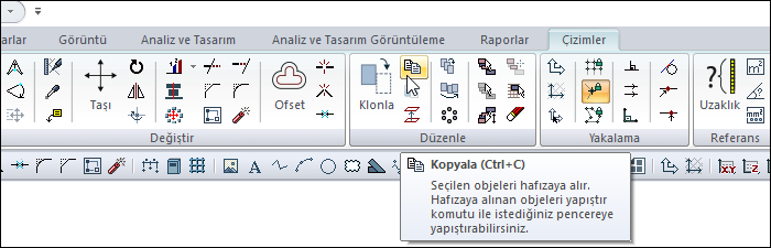 Ayrıca Çizimler sekmesi Düzenle başlığı altında bulunmaktadır.