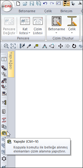 Yapıştır komutu programın sol kenarında bulunan toolbardan çalıştırılabilmektedir.